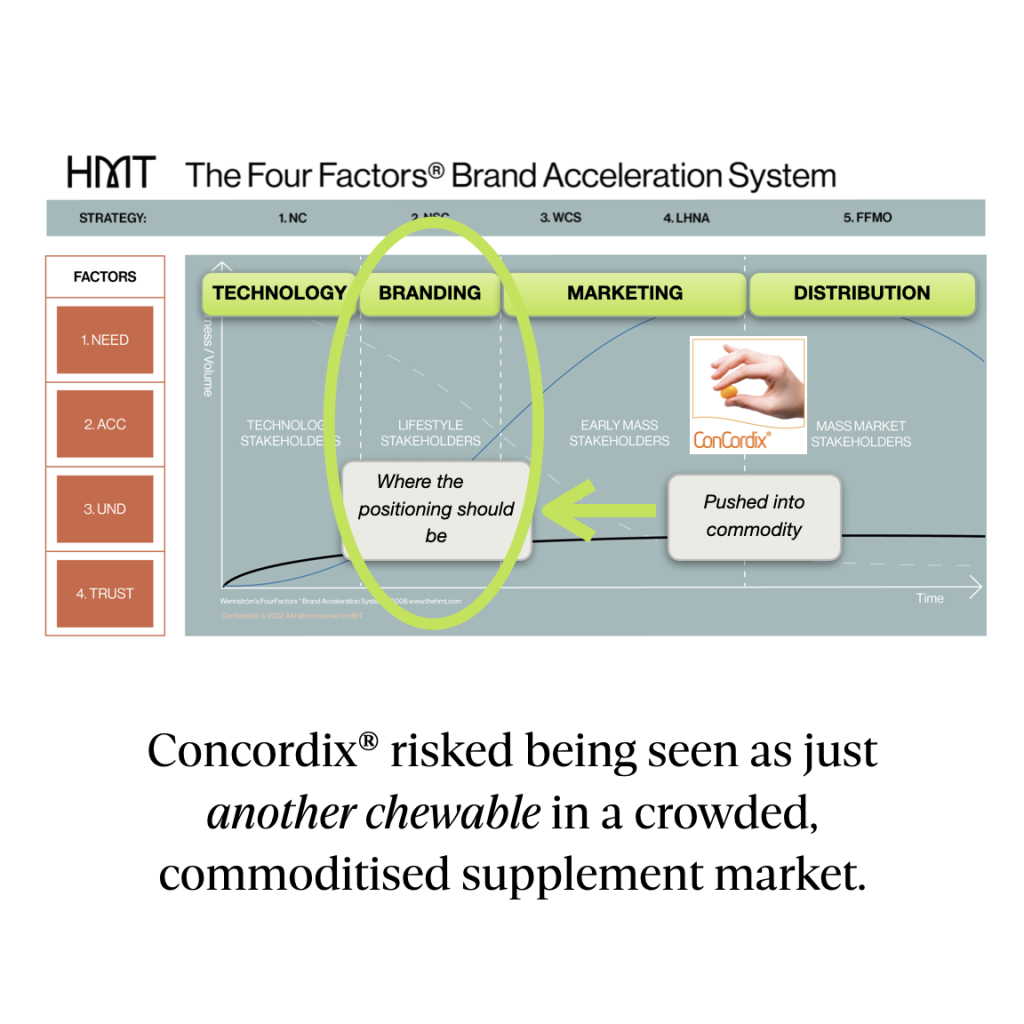 At the same time, consumer pill fatigue was accelerating the shift toward gummies, a fast-growing but increasingly commoditised category. This created a critical challenge for Concordix®: how to clearly differentiate its technology-driven solution from generic gummies.